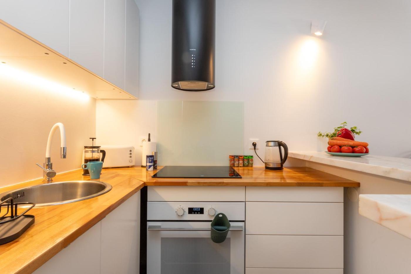 Este apartamento inclui 1 quarto, uma cozinha com frigorÃfico e máquina de lavar louça, e 1 casa de banho com banheira, um secador de cabelo e máquina de lavar roupa. Toalhas e roupa de cama são providenciadas neste apartamento.