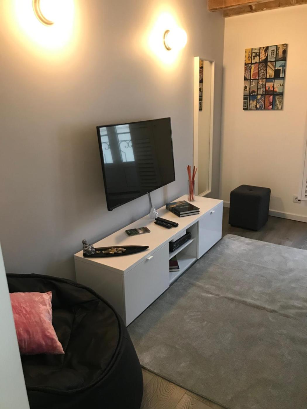 Estúdio Pequeno - Rés do Chão. Featuring a private entrance, this air-conditioned apartment consists of a kitchen, 1 bedroom and 1 bathroom with a shower and a hairdryer. Meals can be prepared in the kitchen, which is equipped with a stovetop, a refrigerator, kitchenware and a microwave. This apartment features a washing machine, flat-screen TV with cable channels, city views, as well as winechampagne for guests. The unit offers 1 bed. ;