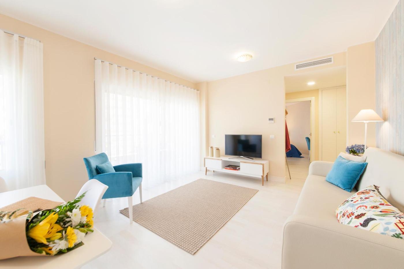 Apartamento com Vista Parcial Mar. This spacious apartment includes 1 living room, 1 separate bedroom and 1 bathroom with a bath and free toiletries. In the kitchen, guests will find a stovetop, a refrigerator, a dishwasher and kitchenware. The air-conditioned apartment offers a flat-screen TV with cable channels, a washing machine, a tea and coffee maker, a seating area as well as garden views. The unit has 2 beds.